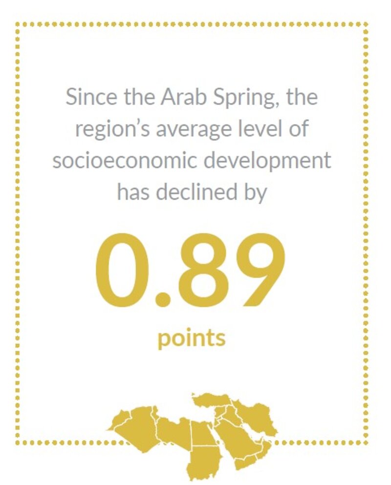 More than a decade after the Arab Spring, the harsh living conditions that helped ignite the 2010 uprisings remain largely unchanged across the region. To be sure, the United Arab Emirates and Qatar boast highly advanced or advanced market economies that are supported by extensive social safety nets. Yet, together, they only account for roughly 2% of the region’s total population. In stark contrast, roughly 60% of the region’s residents – or around 376 million people – live under severely constrained or even rudimentary economic and social systems, which has immediate consequences on their daily lives.