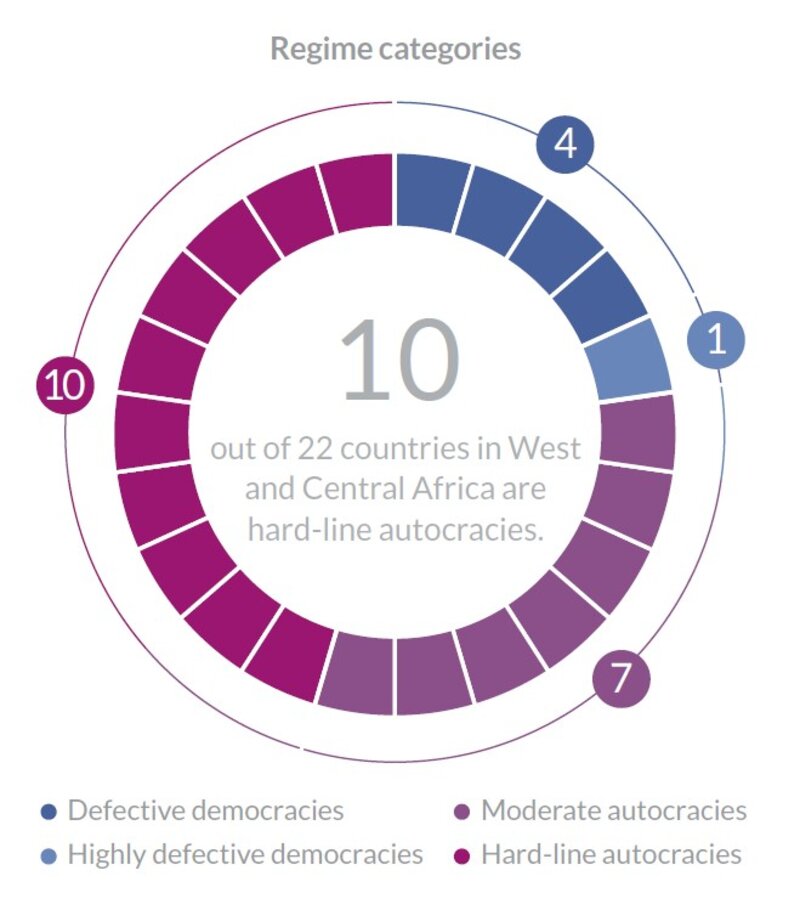 Recent political trajectories in West and Central Africa have been sharply uneven. On the one hand, we have seen military coups and the consolidation of authoritarian rule; on the other, incremental moves being made toward democracy. Across the region, we see a wide spectrum ranging from defective democracies to hard-line autocracies, with autocracies in the majority.
